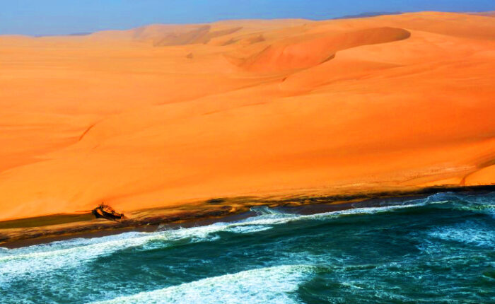 Il Namib è uno dei più antichi deserti del mondo; il suo nome significa ‘il nulla’. Si estende per 1600 Km lungo la costa e per altri 500 Km verso l’interno. In nessun altro luogo al mondo esistono paesaggi così desolati e al tempo stesso così affascinanti.