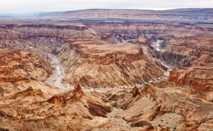 Il Canyon Sesriem è situato a circa 4,5 km dal cancello d’ingresso principale del Parco Nazionale del Namib-Naukluft , ai margini del deserto del Namib nelle vicinanze del versante meridionale della catena dei monti Naukluft in Namibia. Compreso nel Namib-Naukluft National Park (il parco nazionale di maggiore estensione in Namibia e in Africa) nella Regione di Hardap. Il Sesriem Canyon, uno straordinario fenomeno geologico, è diventato una delle più frequentate attrazioni turistiche della Namibia per le rinomate bellezze naturali della zona,. Milioni di anni fa, il Sesriem Canyon fu scavato tra le rocce sedimentarie fino a una profondità di 30 metri per un chilometro di lunghezza dal fiume Tsauchab, che scorre impetuoso soltanto in caso di rare piogge sulle montagne Naukluft. In alcuni tratti il canyon è piuttosto stretto (fino a un minimo di 2 m); in questi punti si formano delle pozze d’acqua perenni, da cui gli animali possono bere. In afrikaans, “Sesriem” significa “sei cinghie”, e deriva dal fatto che i primi coloni dovevano usare un sistema di sei corregge per estrarre l’acqua dal fondo della gola. Appena a sud della stazione di servizio di Sesriem, un sentiero conduce al Sesriem Canyon. Una volta scesi, si può camminare agevolmente lungo il letto asciutto del fiume. Le pareti del canyon sono composte da diversi strati visibili di roccia sedimentaria di sabbia e ghiaia depositate con grotte e incredibili formazioni rocciose. Oltre a qualche specie arborea, è habitat di piccioni, corvi, storni, lucertole, coleotteri, avvoltoi, gufi reali, sciacalli. Il canyon è più spettacolare all’alba e al tramonto, quando la luce diventa soffusa scoprendo paesaggi mozzafiato.