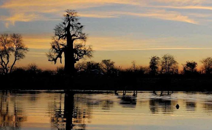 Il vasto spazio aperto di Makgadikagadi Pans, fa sperimentare un silenzio così totale da avere quasi l’impressione che si possa sentire addirittura scorrere il proprio sangue. Una serie di grandi saline sono tutto ciò che rimane di un vasto antico super-lago che si prosciugò circa 10.000 anni fa e le cui origini risalgono a più di cinque milioni di anni fa. Dopo le piogge l’avifauna è spettacolare e si possono ammirare stormi di fenicotteri che a migliaia scendono sugli stagni creando un magico e colorato spettacolo.